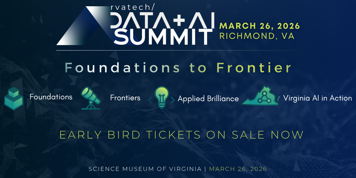 Our friends in Richmond are seeking speakers for their big annual event, the RVATech Data & AI Summit! The summit will be on March 26, 2026, at the Science Museum of Virginia. Their Call for Proposals is currently open and accepting submissions: